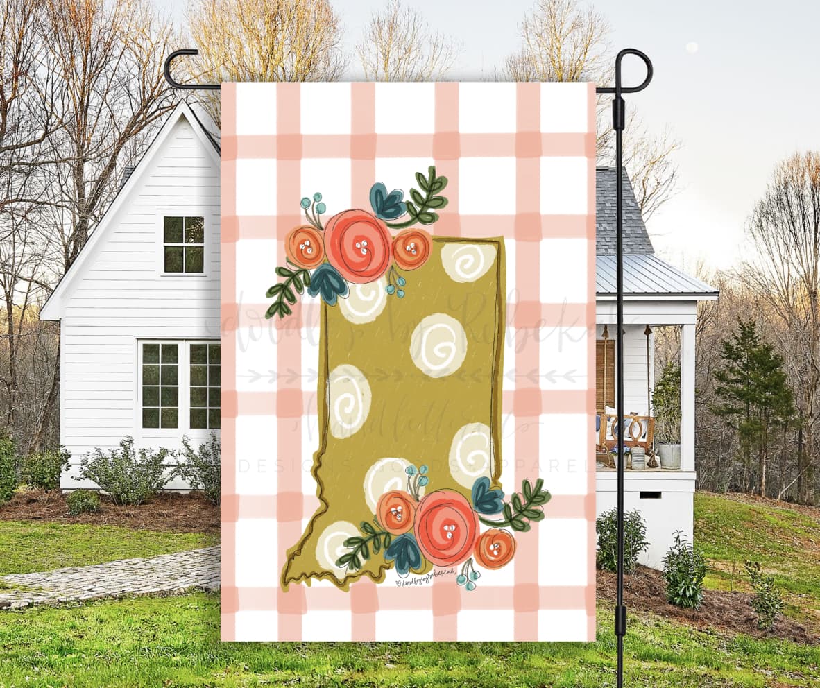 Indiana Floral Dot Garden Flag